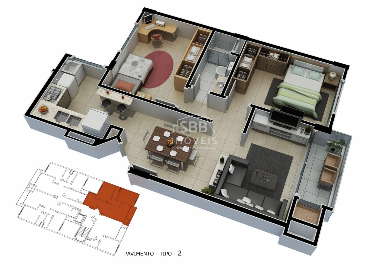 3 Dorm. | 1 Suíte(s) | 1 Vaga(s)
